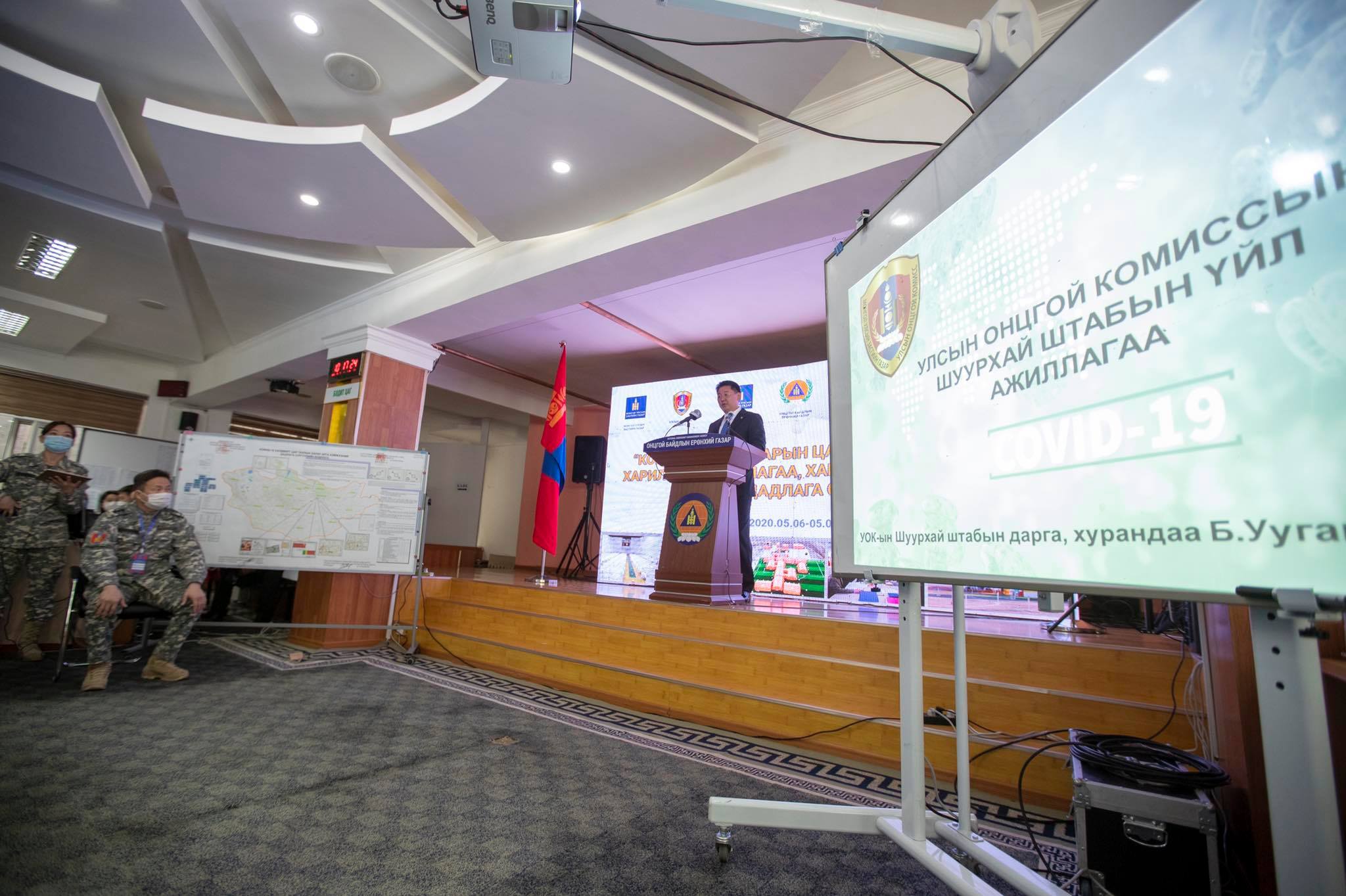 Монгол Улсын Ерөнхий сайд У.Хүрэлсүх өнөөдөр/2020.05.07/ “КОВИД-19” халдварын цар тахлын үеийн харилцаа хамтын ажиллагаа, хариу арга хэмжээний дадлага сургуулийн үйл ажиллагаатай биечлэн танилцав. ОБЕГ-т байрлаж буй УОК-ын Шуурхай штабын бэлэн байдлыг шалгаж, цаг үеийн мэдээлэл, дадлага сургуулийн талаар танилцуулга сонсч, алба хаагчдад хандан үг хэлэв.